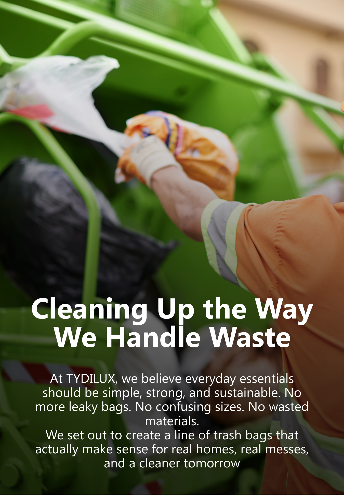 - TYDILUX specializes in durable, high-performance trash bags made for everyday residential and light-commercial use.
